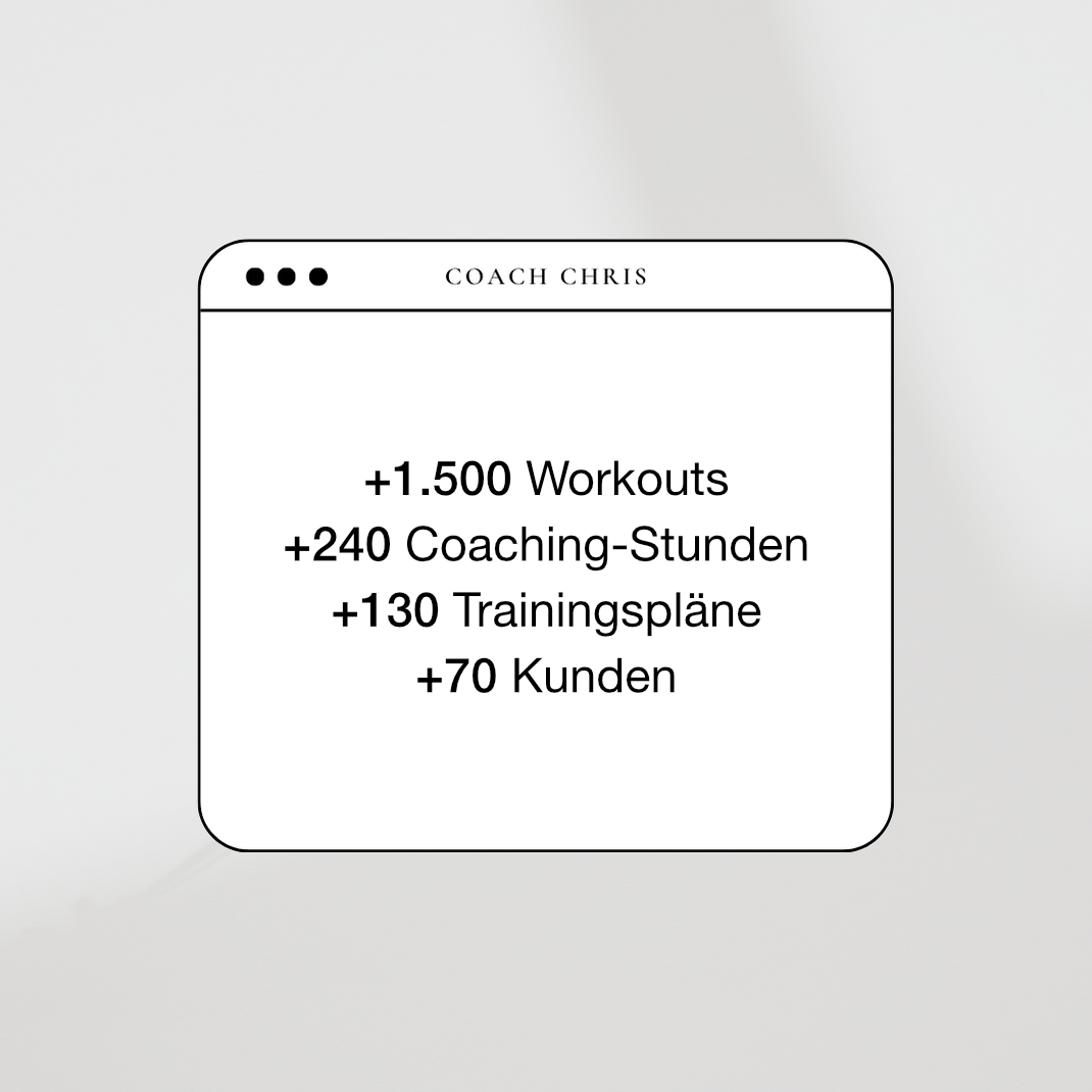 Chris kann mittlerweile auf +240 absolvierte Coachingstunden und +1.500 Workouts zurückblicken. Darüber hinaus war er zu Beginn als Fitnesstrainer bei Fitness First, einem der größten Fitnessunternehmen in Deutschland, aktiv und hat die Mitglieder bei Ihren persönlichen Trainingszielen begleitet.